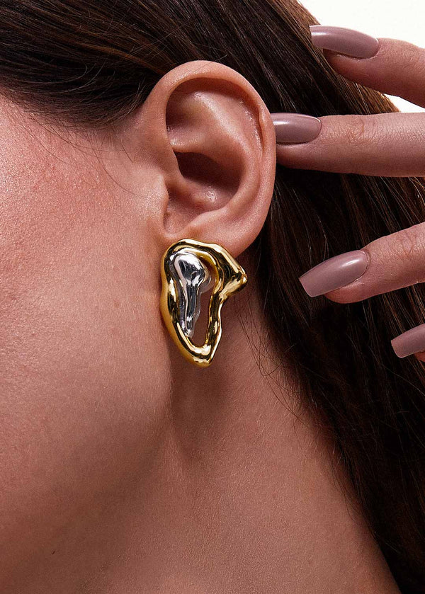O Brinco Antítese Bicolor G oferece um visual impactante com sua estrutura desmontável e prática. Composto por duas partes uma em banho dourado e outra em prata, este brinco celebra a dualidade com elegância e estilo. Seu design orgânico e sofisticado complementa qualquer look, tornando-o ideal para ocasiões especiais. O brinco pesa 36gramas e mede 60x37mm, garantindo presença sem comprometer o conforto.