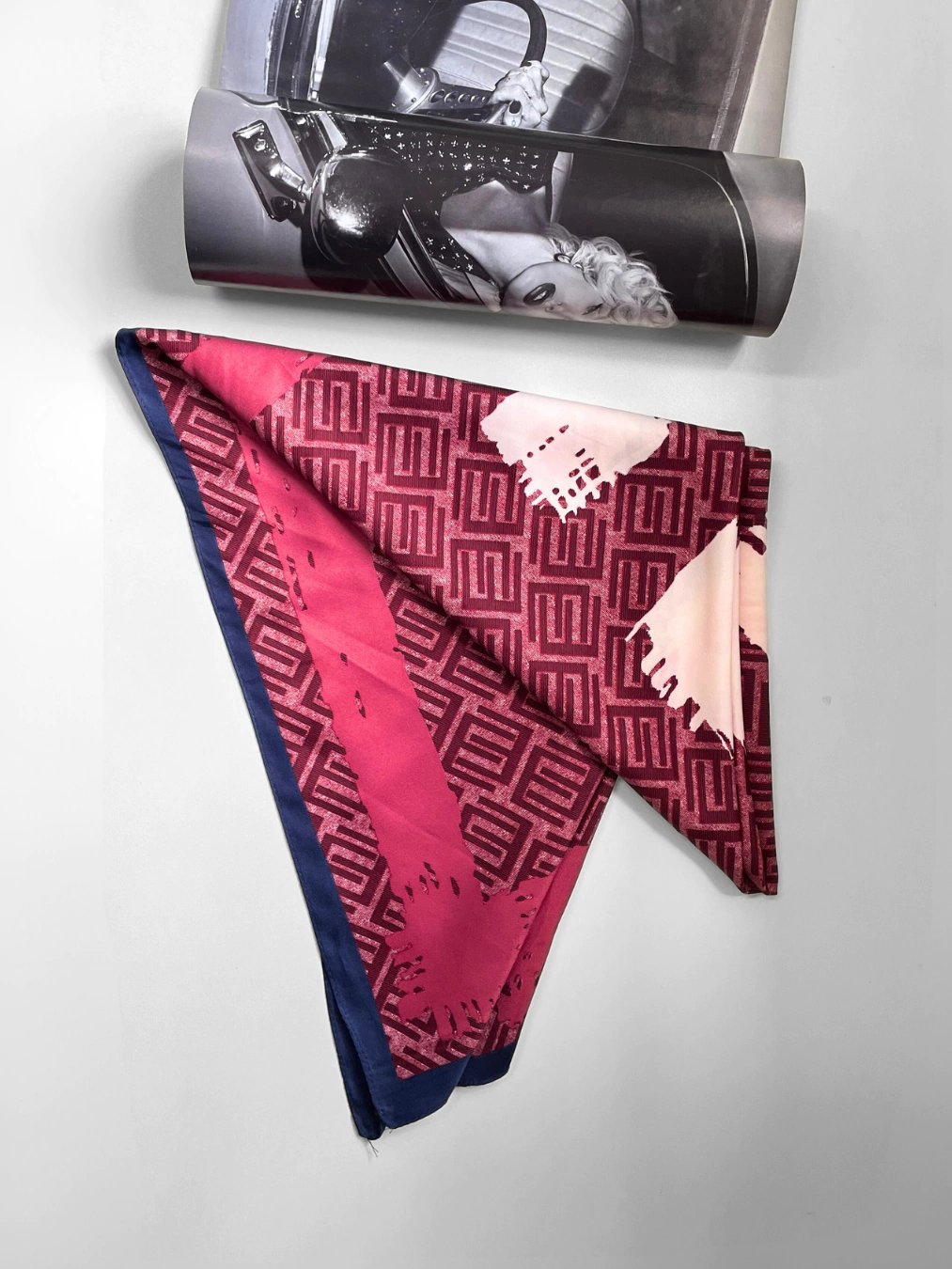 Uma opção de lenço mais discreta em cores clássicas e muito elegantes, como a mistura do cereja+ marinho + bege. Essa peça é feita no cetim seco, o que significa que é um lenço encorpado, sem brilho e mais grosso, ótima opção para criar peças de roupa e não se preocupar com a transparência.